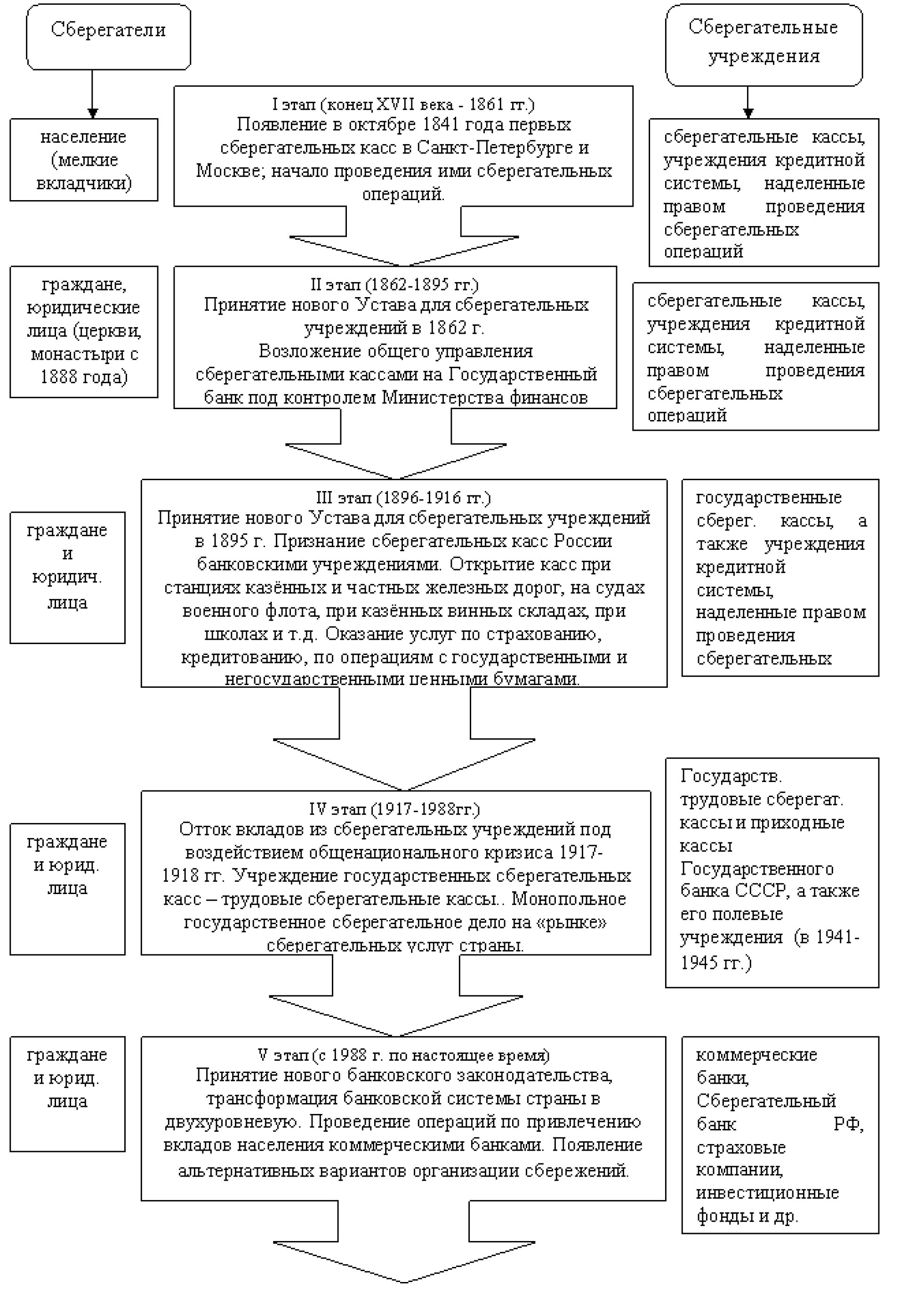 Этапы развития сберегательного дела в России можно представить в следующем виде